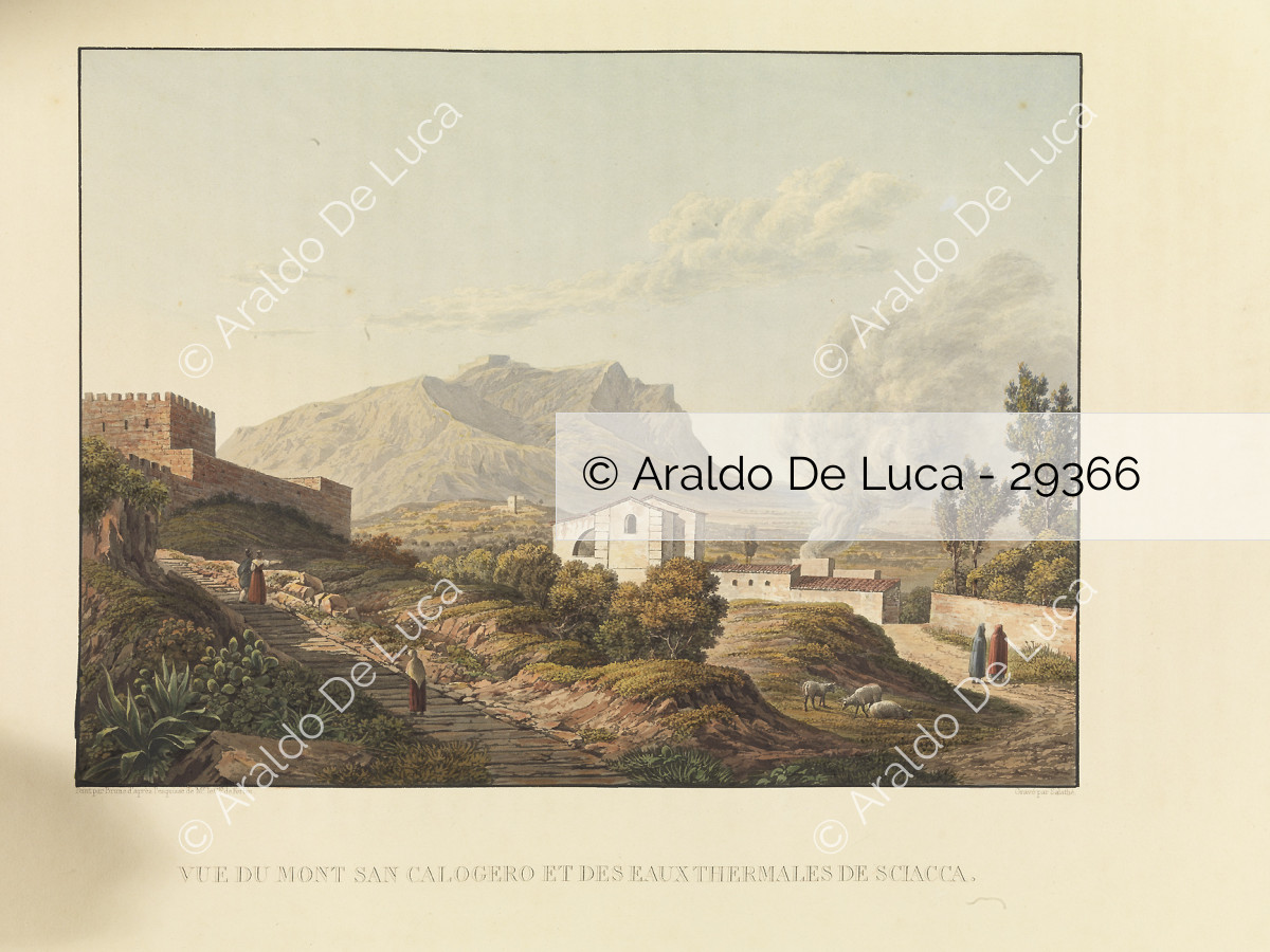 Vue du Mont San Calogero et des eaux thermales de Sciacca - Voyage pittoresque en Sicile dédié à son altesse royale Madame la Duchesse de Berry. Tome premier
